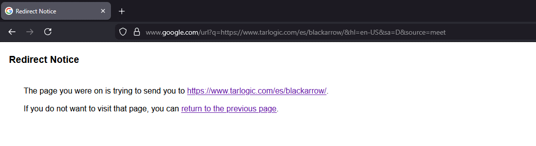 It appears this Open Redirect vulnerability was abused around 2021 and was eventually “fixed”. However, the remediation was partial: the solution was to route traffic through Google’s own redirect system. This mechanism displays an intermediate warning banner that requires explicit user interaction to follow the target link. For example: