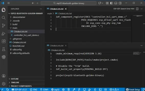 All the above components are published in separated libraries which makes them harder to analyse in Ghidra. Fortunately, we can generate a “golden binary” that combines all of them into a single ELF file. We have documented how to do this in the past using the ESP toolchain using the linker tools. As a simple alternative way to achieve a golden binary, we have created an ESP-IDF standard project that anyone can compile by specifying the libraries we want to reverse engineer as dependencies and by instructing CMake to not «strip» or «trim» the resulting binary, keeping all functions and code even if it is not used! You can find the golden binary project in GitHub.
