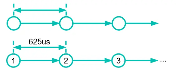 The ESP32 Bluetooth peripheral deals with this using a «pre-fetch» mechanism. The main exchange table defines 16 slots. The BTDM core will continuously iterate those 16 table entries and execute the operation of each slot synchronized to a 625us clock.