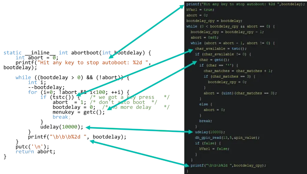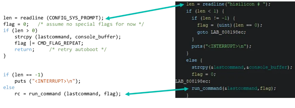 This directly leads us into confirming the stop autoboot character and if we follow the original source code, we locate the command line related functions:
