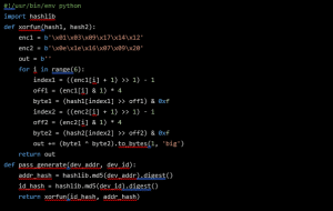Finally, the bytes checking function obtains the “id” of the device and the ethernet address, hashes them and combines both using a xor function to generate a value to check the password against.