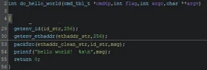 Then, the hello_world command is used to retrieve the encoded “id” and mac address data. Using the keygen a password is generated from that data.